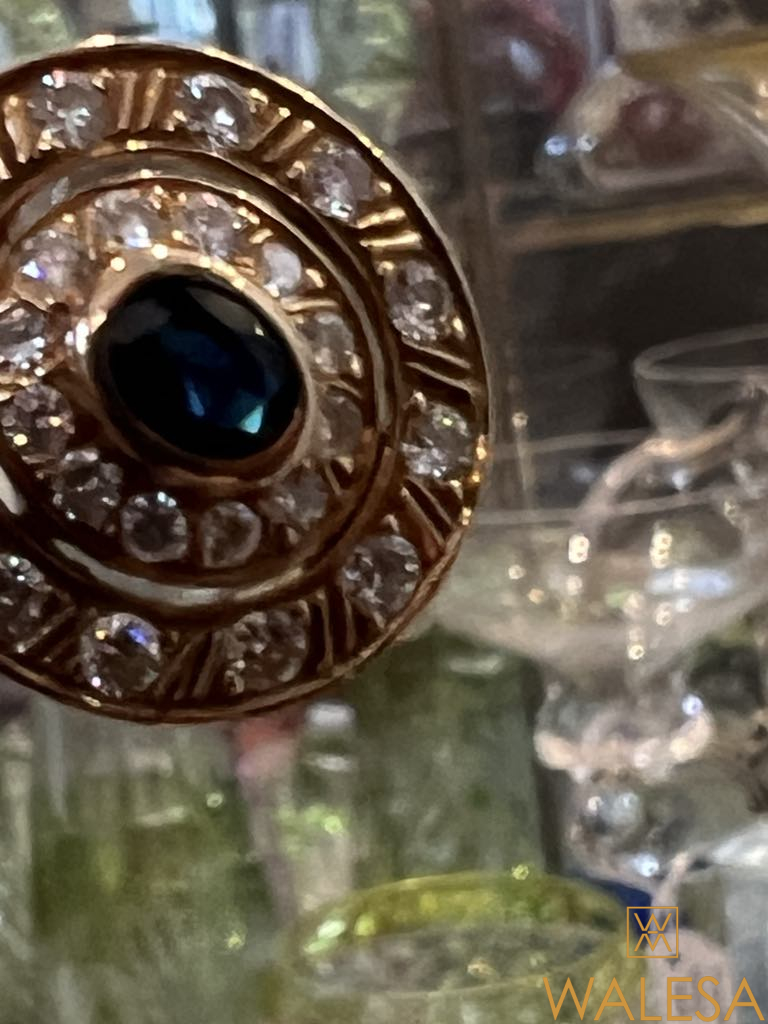 Pendentif médaillon rond or jaune saphir et diamants 4