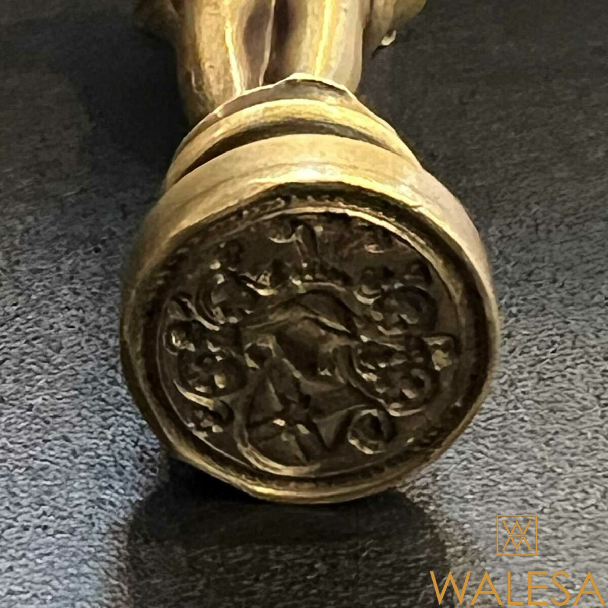 La base : sceau représentant les armes de famille.