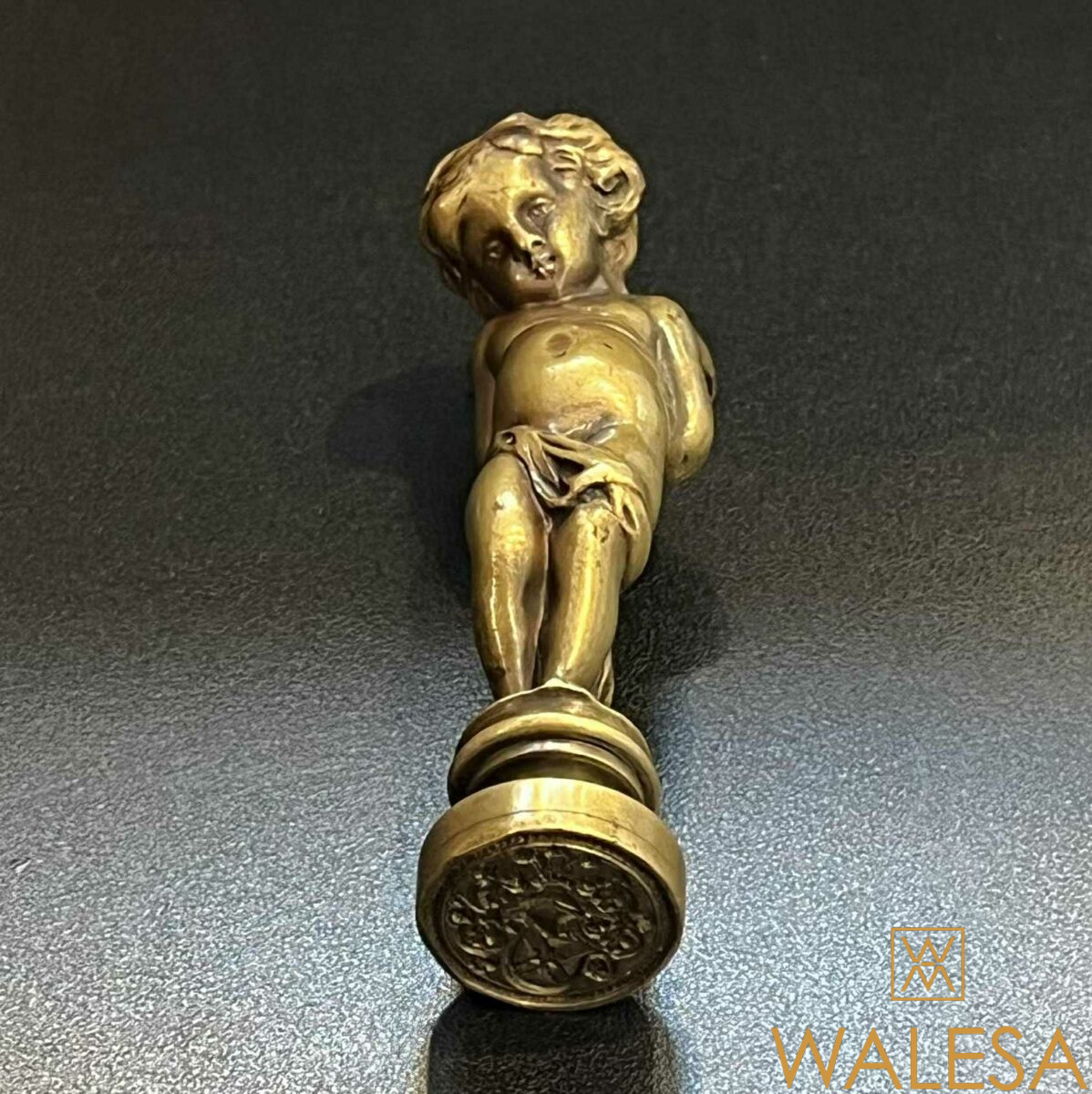Sceau en bronze représentant un enfant ailé dit « chérubin » ou putto.