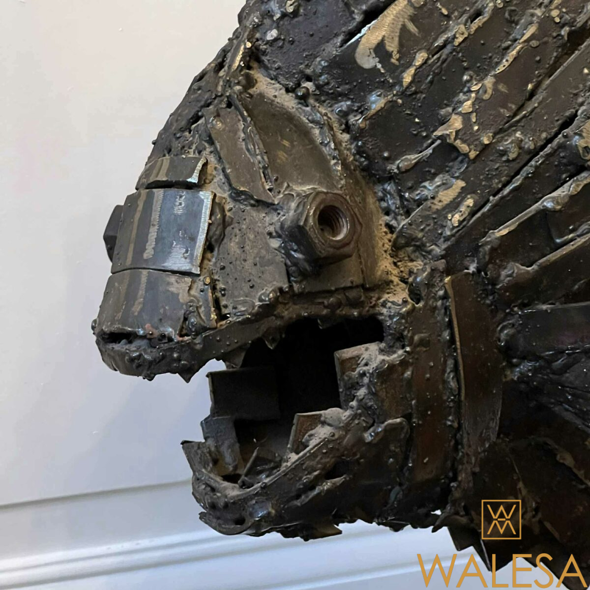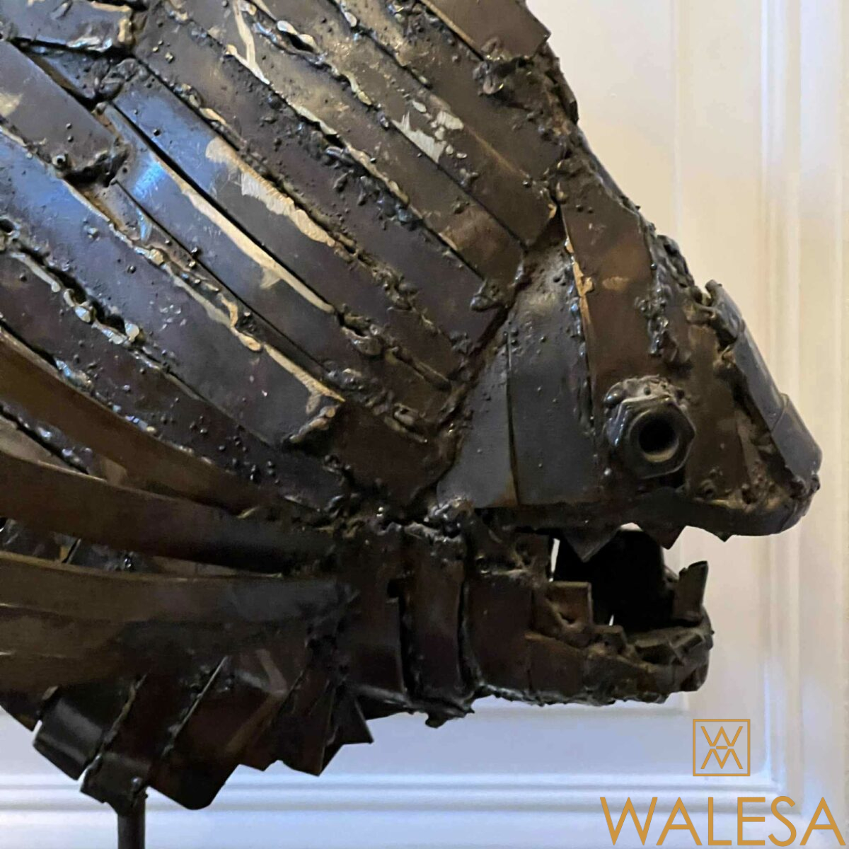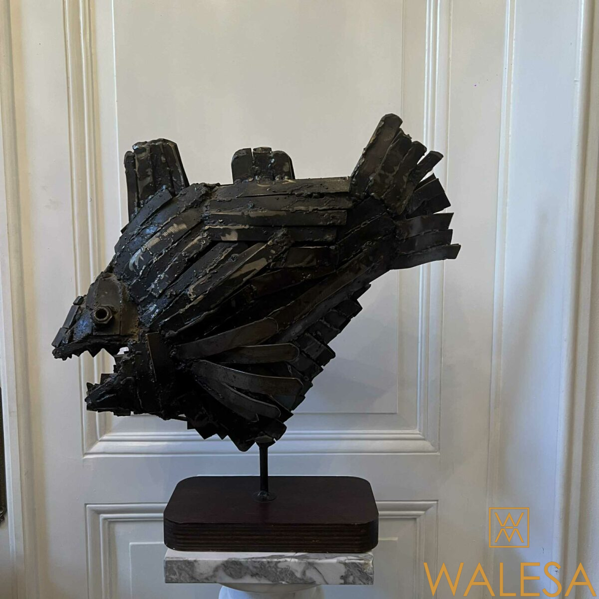 « Piranha » sculpture en forme de poisson en métal découpé en lamelles et soudé