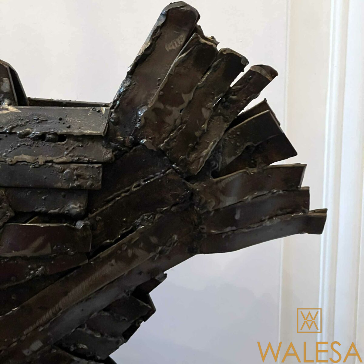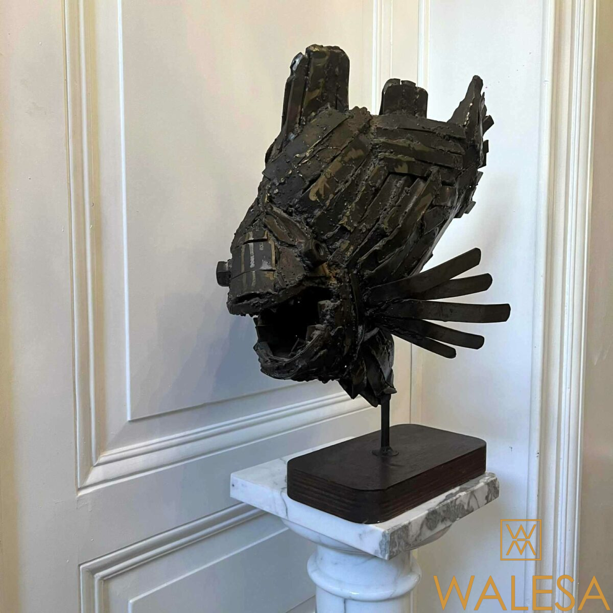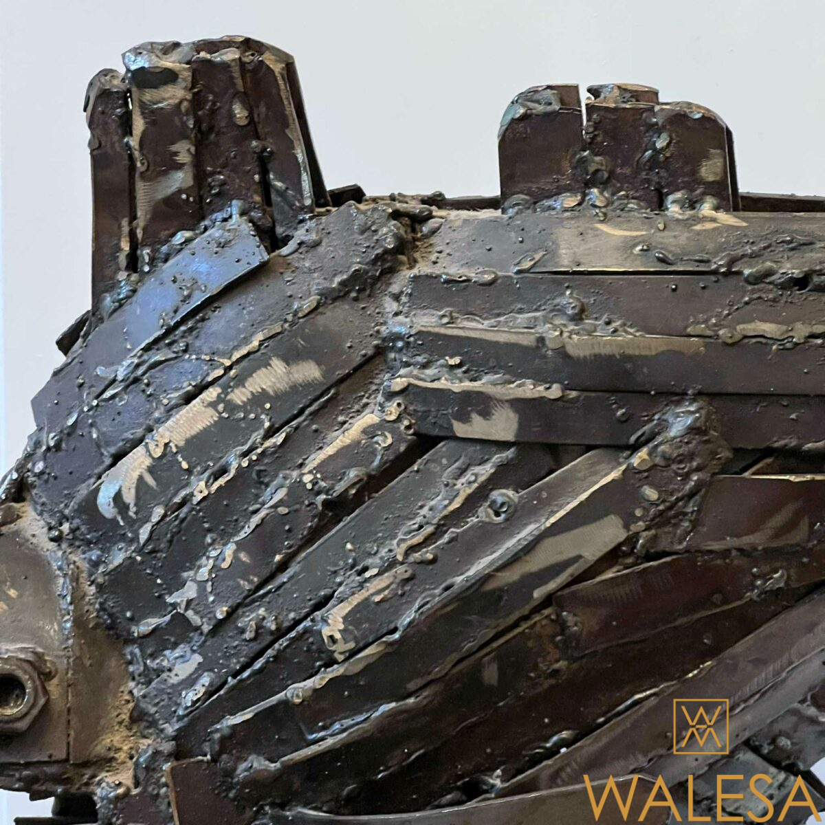 « Piranha » sculpture en forme de poisson en métal découpé en lamelles et soudé