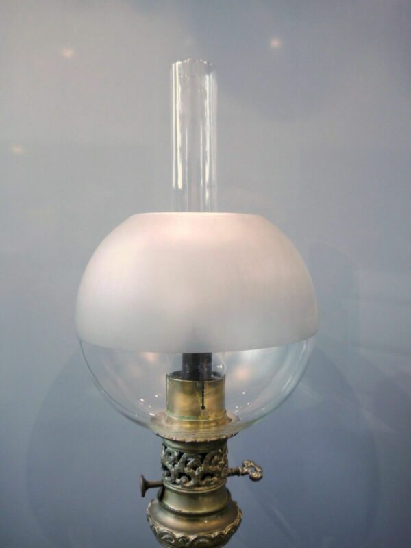 Globe en verre clair et dépoli, cheminée en verre clair.