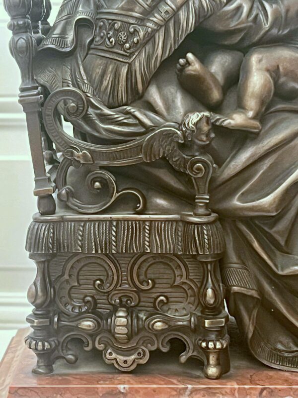 Sculpture en bronze et patine brune sur le socle en marbre.
