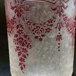Coupelle cristal VAL SAINT LAMBERT clair doublé rose à décor dégagé à l’acide