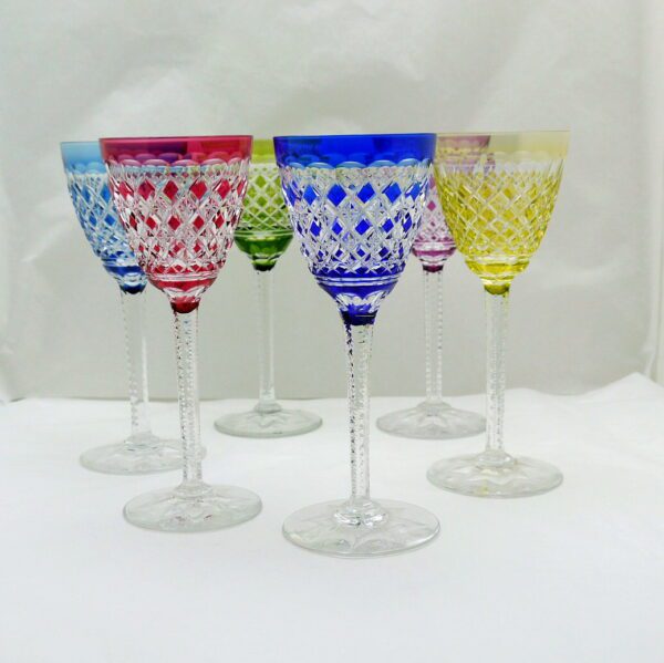 6 verres à vin 19,5 cm cristal 6 couleurs Val Saint Lambert