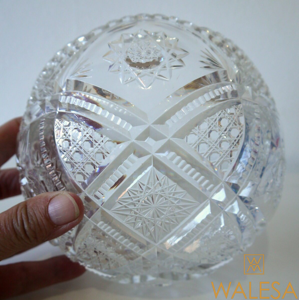 De forme ronde, cristal clair à taille riche et bords festonnés
