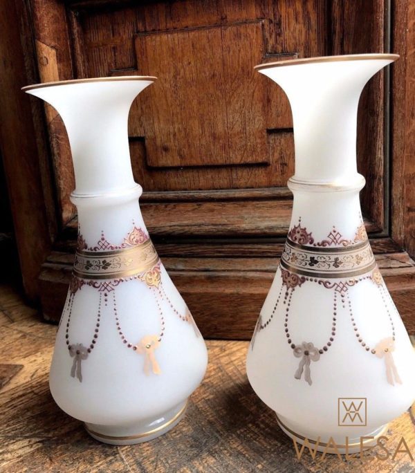 Très belle paire de VASES en Opaline à décor peint et doré,