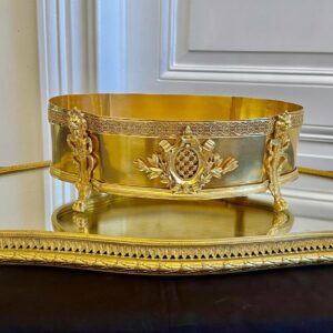 Imposante jardinière de table en bronze ajouré finement travaillé et doré.