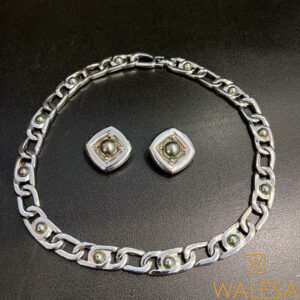 Parure Dior en métal argenté et perles grises