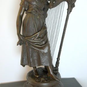 Auguste Moreau Sculpture, Femme à la harpe – 66 cm – Régule