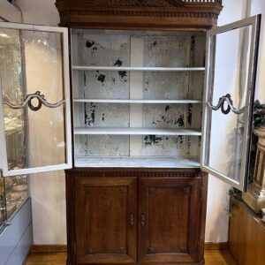 Buffet vitrine à deux corps de style liégeois Régence-Louis XV chêne sculpté