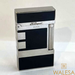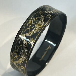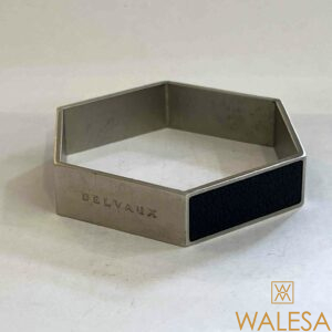 Bracelet DELVAUX octogonal en acier brossé et cuir noir grainé